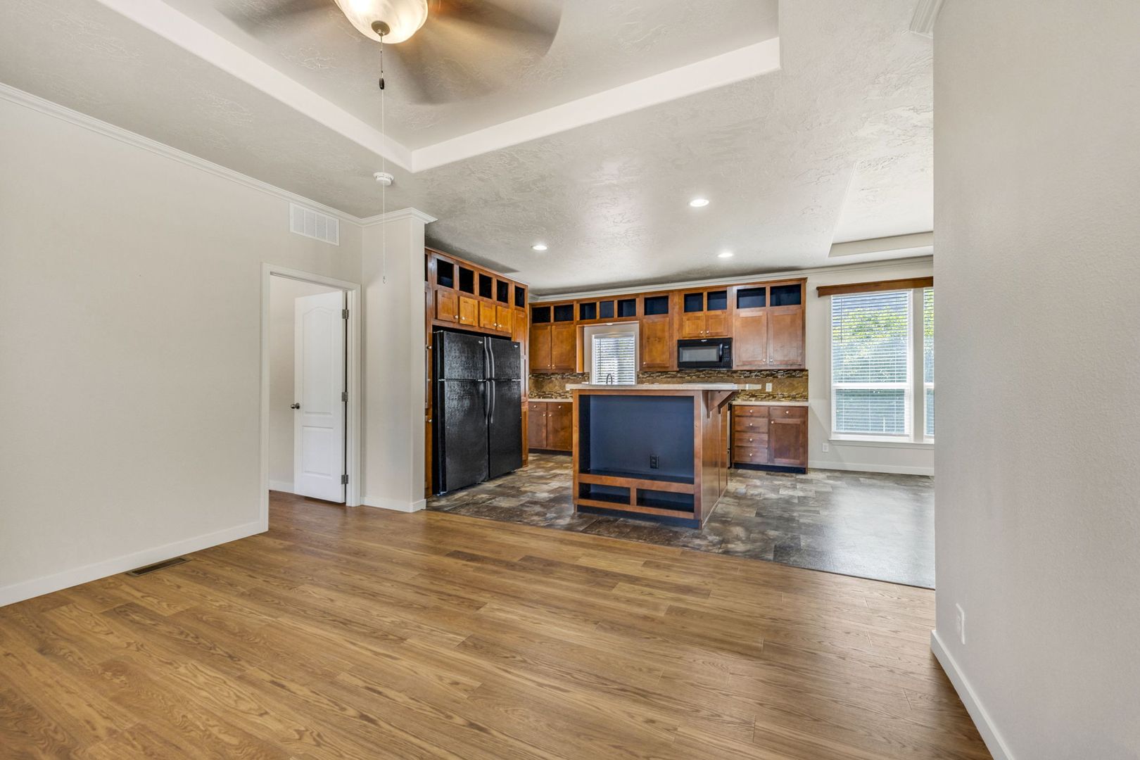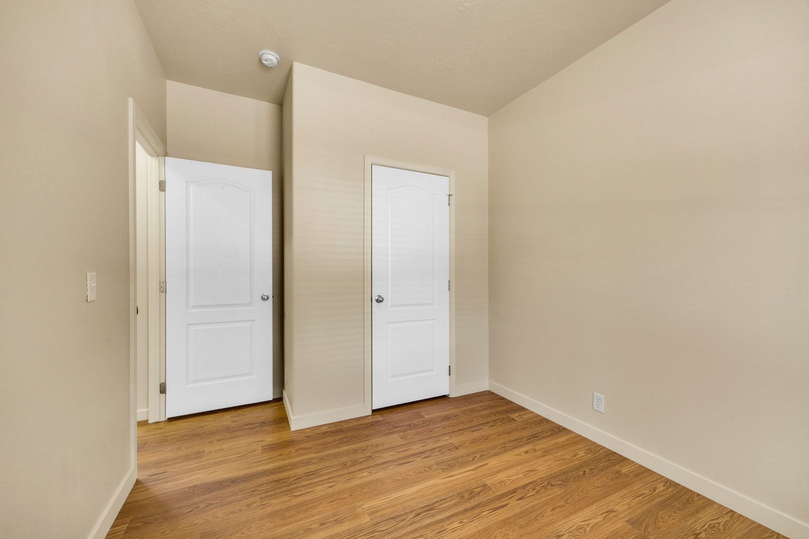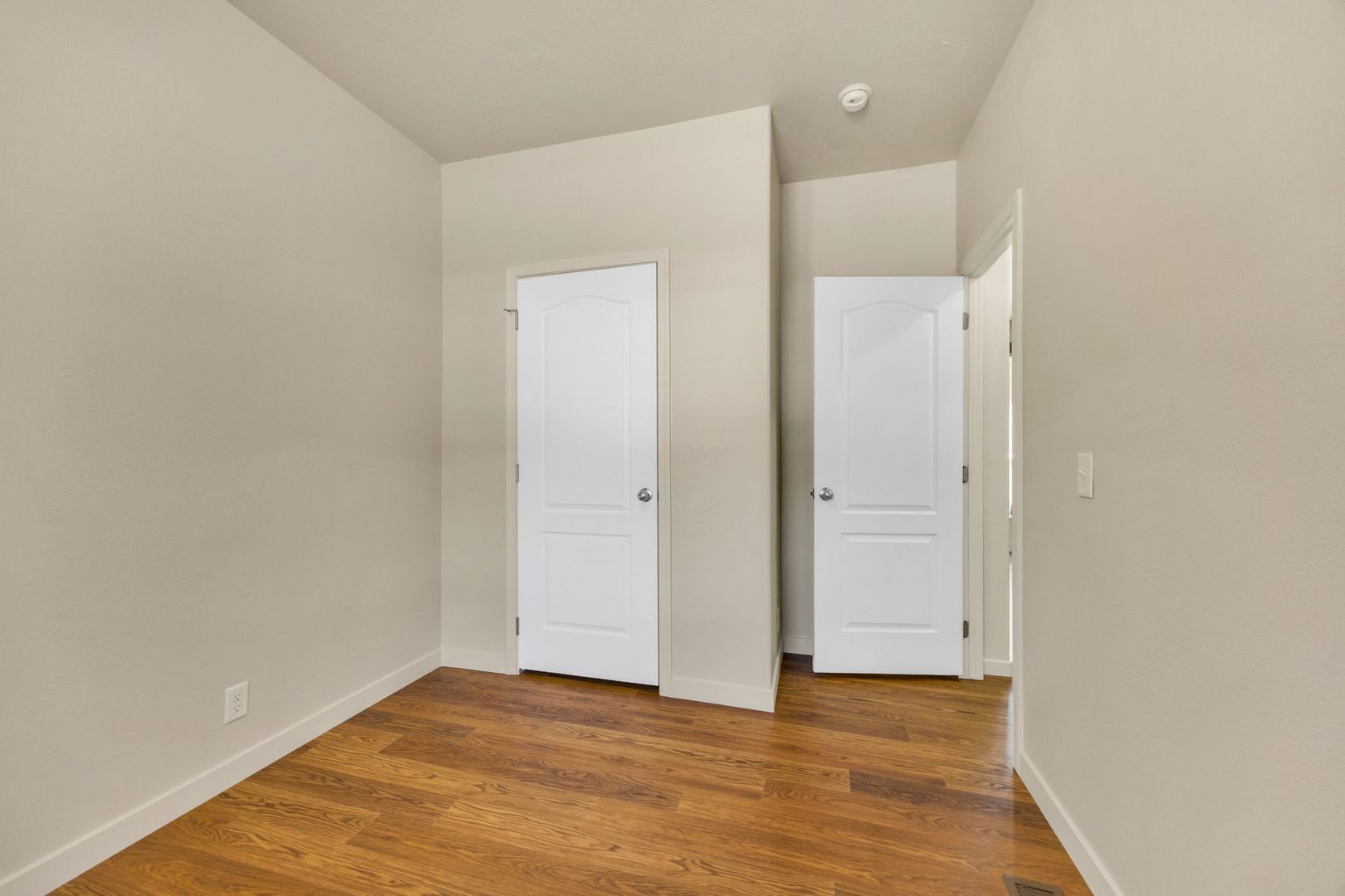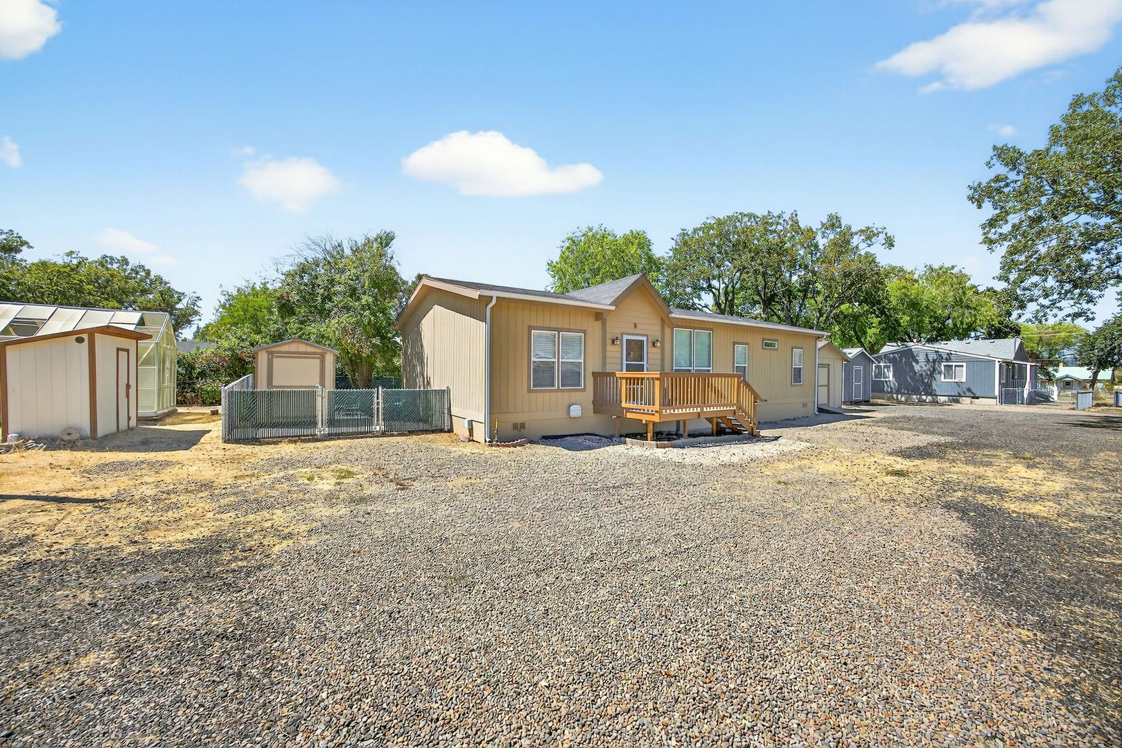 Modern and inviting 3 BD 2 BA split-floor-plan manufactured home built in 2016 offering 1,456 sq ft of bright, open living space. Featuring new flooring, high ceilings, and abundant natural light, this home combines comfort and functionality. The spacious layout provides privacy between the primary suite and secondary bedrooms. This home shares a 1-acre lot w/ 2 other homes, creating a small community feel while still offering privacy. Enjoy outdoor living on the front deck or relax on the private back patio. Two matching storage sheds provide excellent additional storage. Parking is available for up to 2 vehicles. Rent includes quarterly pest control, garbage service, and semi-annual landscape cleanup of the common areas. Located on a shared well (with Unit C) and includes access to a community greenhouse. Fiber internet available. Tenants are responsible for landscaping within the fenced yard and around the home, plus sewer and electric. Up to 2 dogs under 40 lbs allowed (no cats).