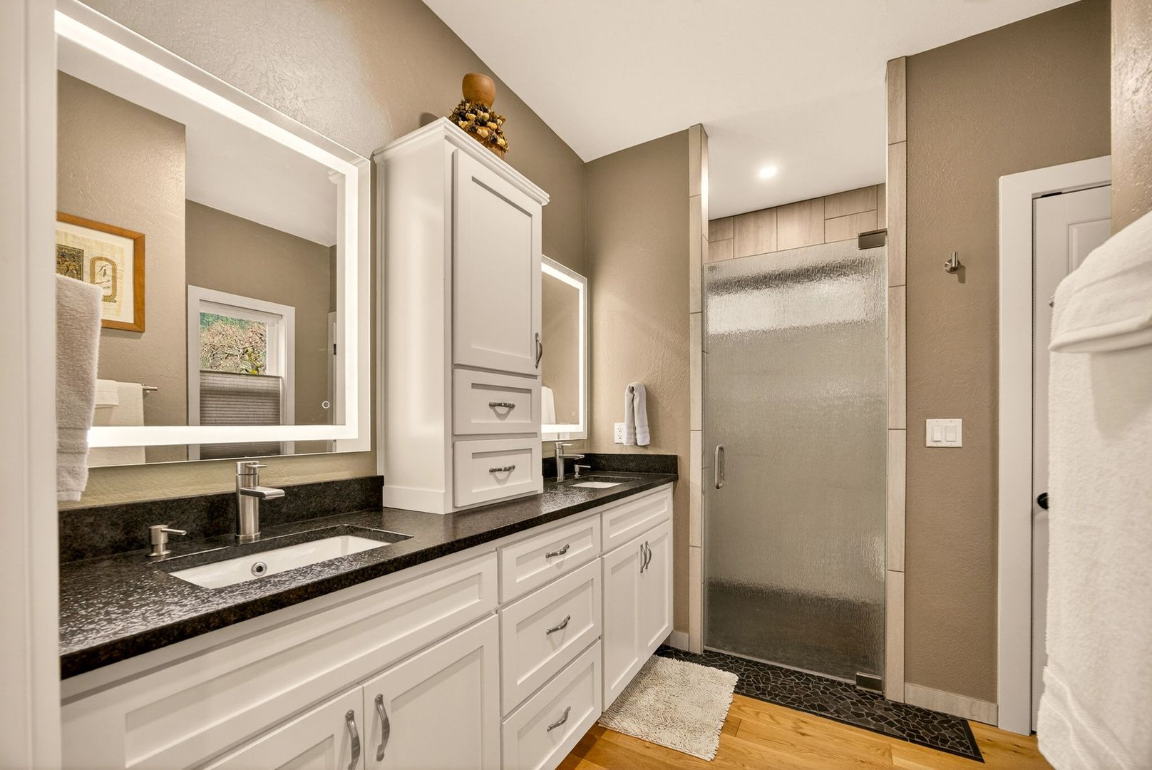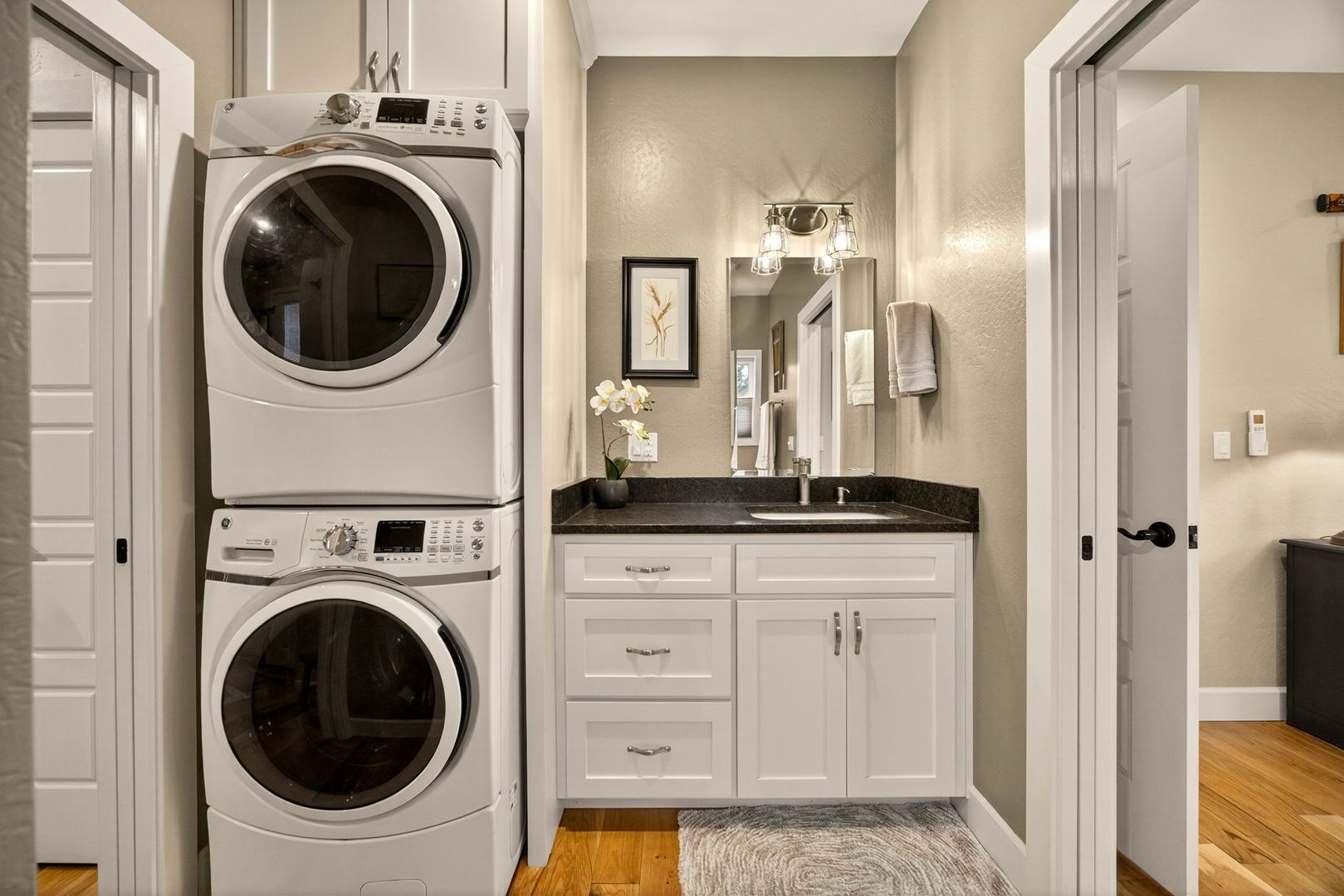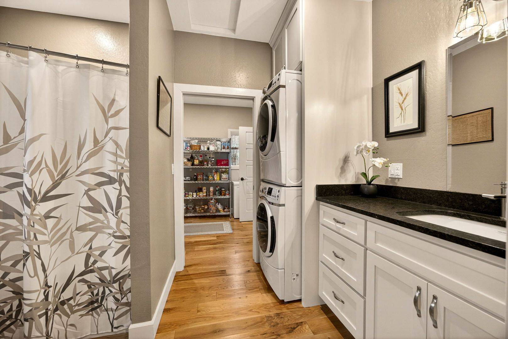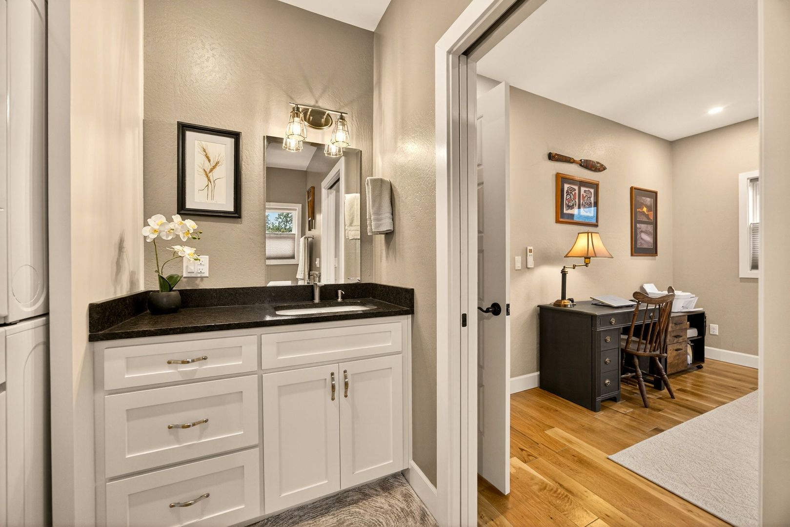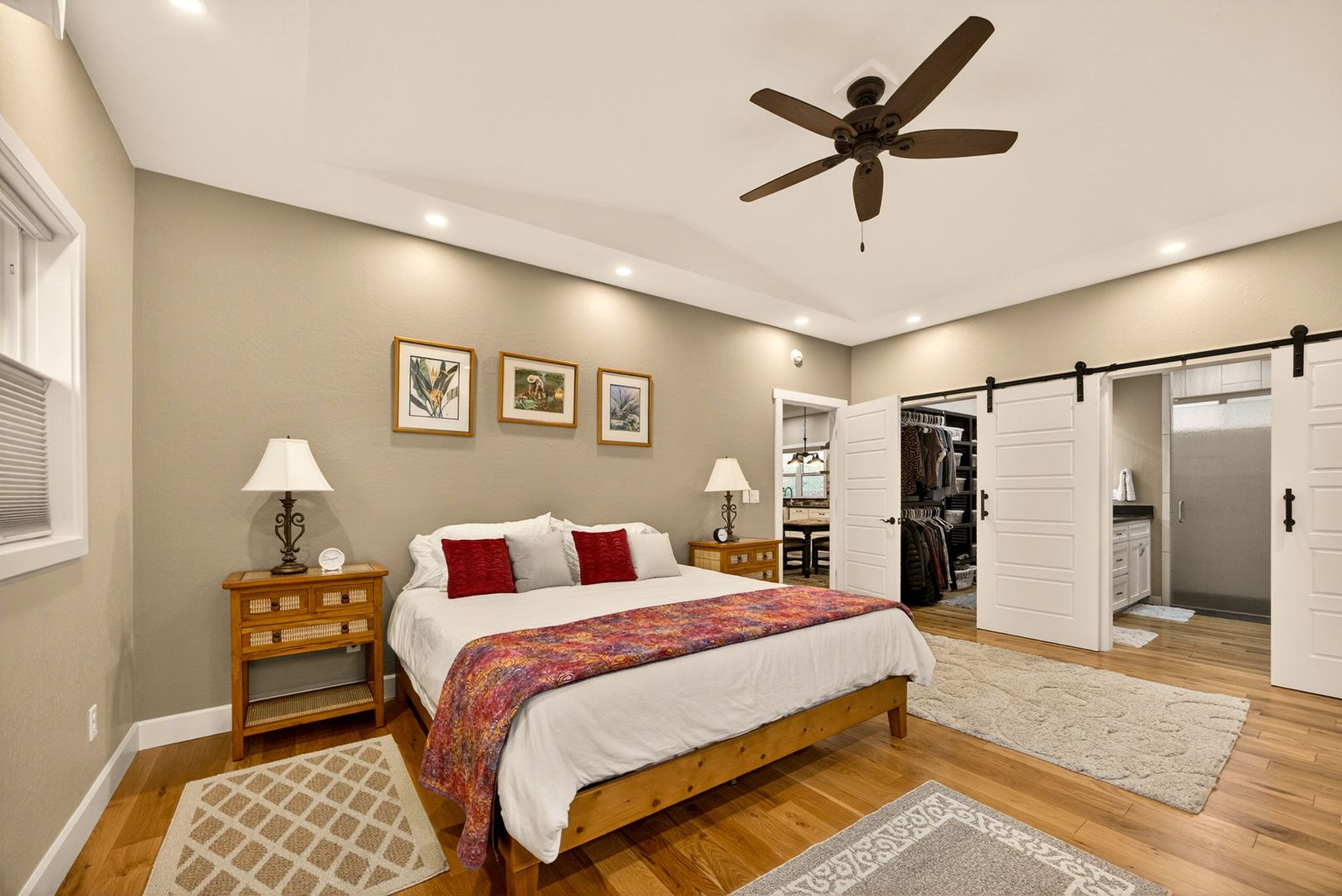 Situated between Jacksonville and Grants Pass, this beautifully maintained country home sits on over 4 acres and offers peaceful Applegate Valley views from the covered front deck. The open-concept 2 BD 2 BA layout features solid oak hardwood floors, vaulted ceilings, and a spacious living room w/ a wood stove that opens to the kitchen and dining area. The kitchen includes granite countertops, a butcher block island, custom cabinetry, stainless appliances, and a farmhouse sink. A generous pantry off the kitchen provides exterior access and connects to the guest bathroom that doubles as a laundry room. The primary suite opens to a private patio overlooking the garden and features an ensuite with walk-in shower, double vanity, and touch-light mirrors. Outside you’ll find a detached 2 car garage, fenced in garden, fruit trees, wood storage, and manicured grounds. Offered on a month-to-month rental agreement, w/ the hope of securing a long-term tenant. Landscape maintenance is included.